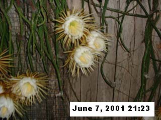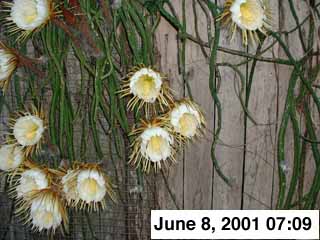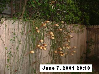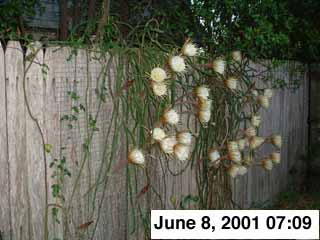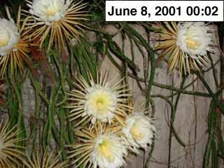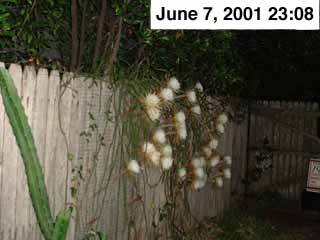 | The purpose of this page is to provide an example of impermanent beauty. Although the flowers spend weeks growing, they spend only one night open. This particular variety is fragrant after 2300(11PM). These photos were taken in Clearwater, Florida. |