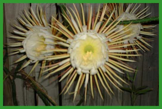 | The purpose of this page is to provide an example of impermanent beauty. Although the flowers spend weeks growing, they spend only one night open. This particular variety is fragrant after 2300(11PM) These photos were taken in Clearwater, Florida. |